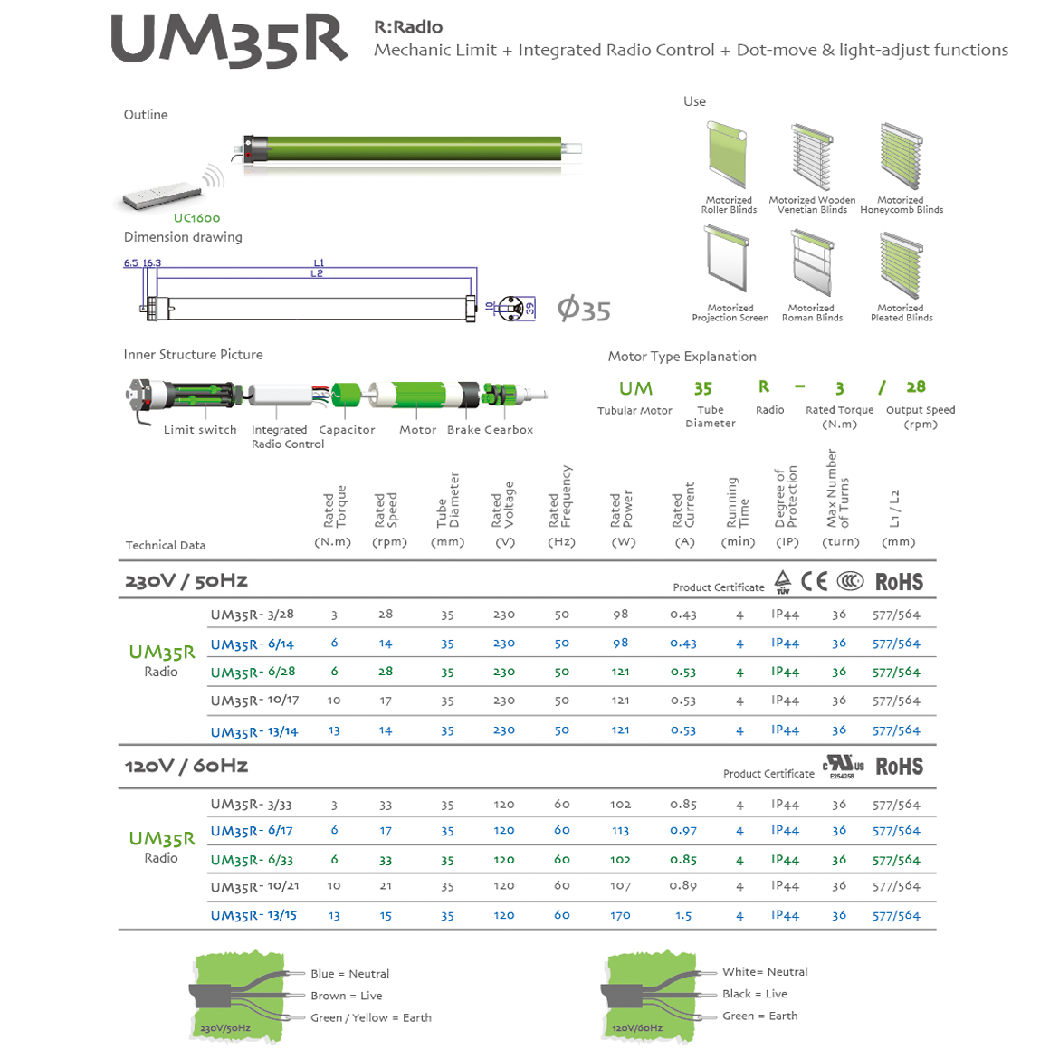 R:Radio/Mechanic Limit+Integrated radio control+jogging & tilt