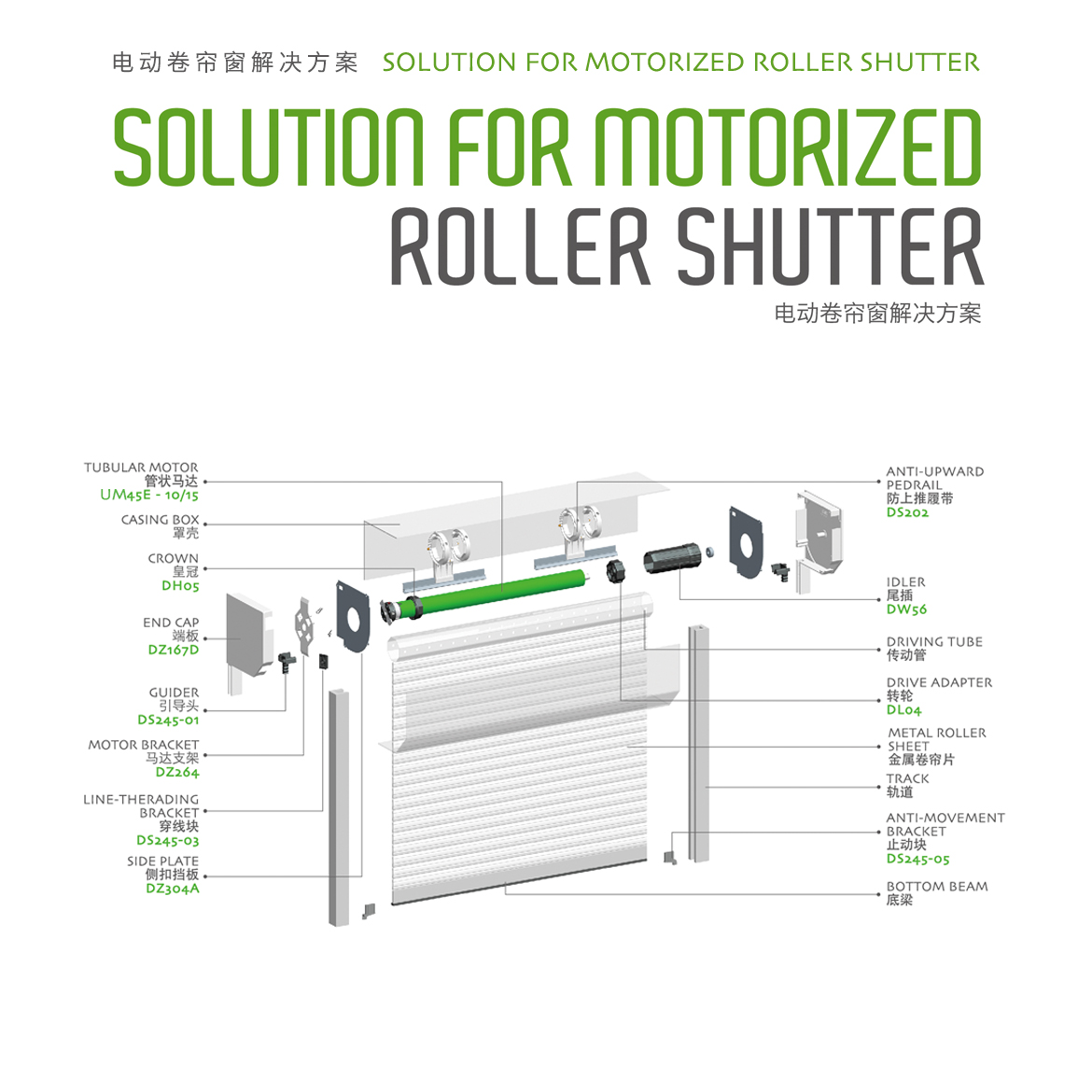 R:Radio/內置接收型 機械行程限位+內置接收器+點動調光功能